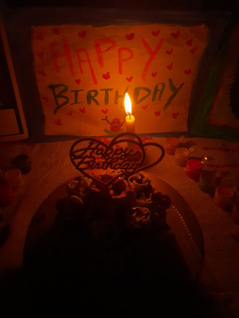 तो मैं कहाँ थी ... हाँ छोटा कमरा !! जिसका एक कोना बाहर खिड़की की तरफ और दूसरा बगल कर कमरे की पतली हुई दीवार से जुड़ा हुआ था  ; बारिश की तेज आवाज और उसकी  छोटी-छोटी बूंदे जो खिड़की के छेदों से निकल कर बार बार मुझे तंग कर रही थी ,  इन दोनों ने मुझे सही से सोने ही नहीं दिया और वही ईशा लड्डूगोपाल वाला छोटा सा लॉकेट (जिसे हम गले में पहनते हैं )  उसे लेकर ऐसे सोई हुई थी मानो कृष्ण की ही गोद में सोई हो !! |